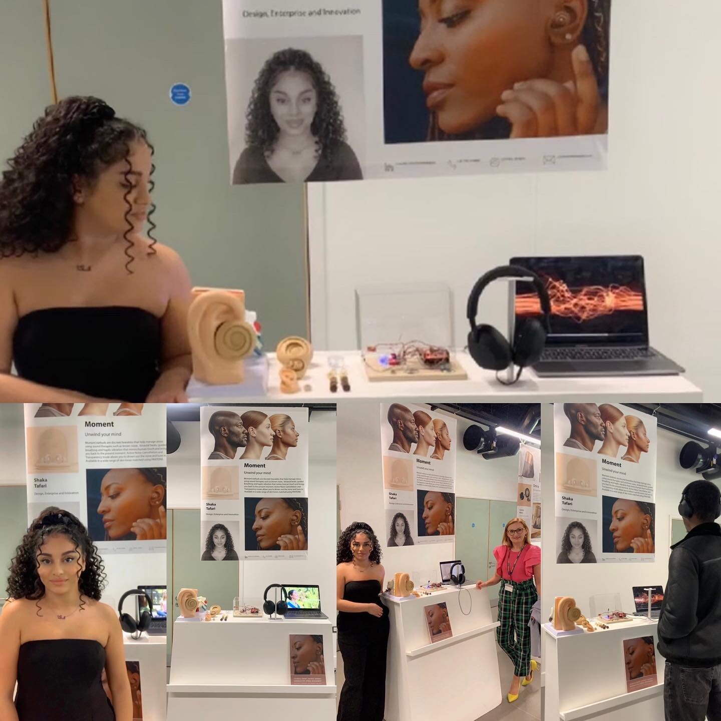 Moment hearables are discreet wireless earbuds that help to monitor and manage stress using biosensors and responds using sound therapies such as brown noise, binaural frequencies, guided breathing and haptic vibrations that mimics βhuman touchβ to help ground you in the present. This can be customised within an integrated app.